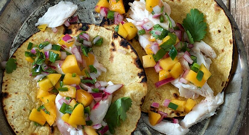 - Place the fish on a serving platter and serve with warm corn tortillas, peach salsa and lime wedges.